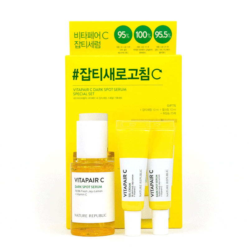 네이처리퍼블릭 비타페어C 잡티 세럼 with 잡티 크림 기획 세트 45ml+50ml(24,900원)+ 솔라C 증정 잡티는 물론 보습과 탄력까지 한 번에 케어할 수 있도록 세럼과 함께 크림이 구성된 기획 세트가 나와서 잘 관리해보려고 기획 세트로 준비했어요! 마시는 비타민C 솔라C도 덤으로 함께 제공되어 너무 좋았습니다. 너무 센스있는 사은품 아니야?