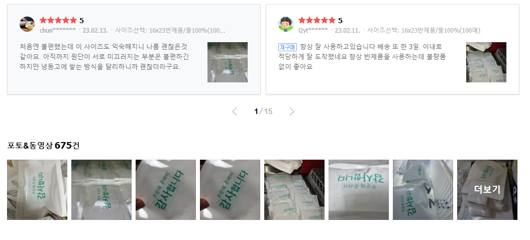 친환경 투명비닐 소 12×17 중 15×20 대 16×24 100% JJ컴퍼니 물 공급
