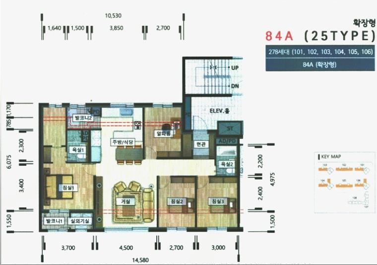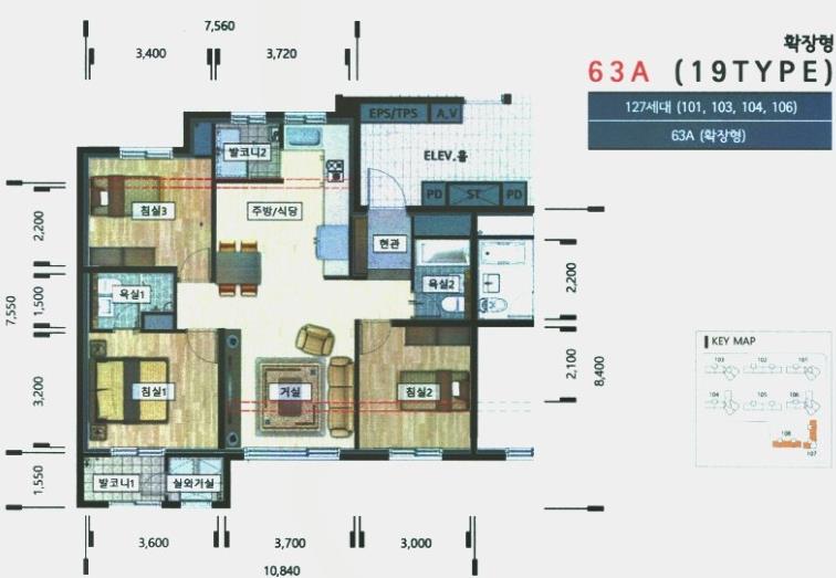 봉선동 이번 편한세상 셀레스테이지 평면도를 보시면,