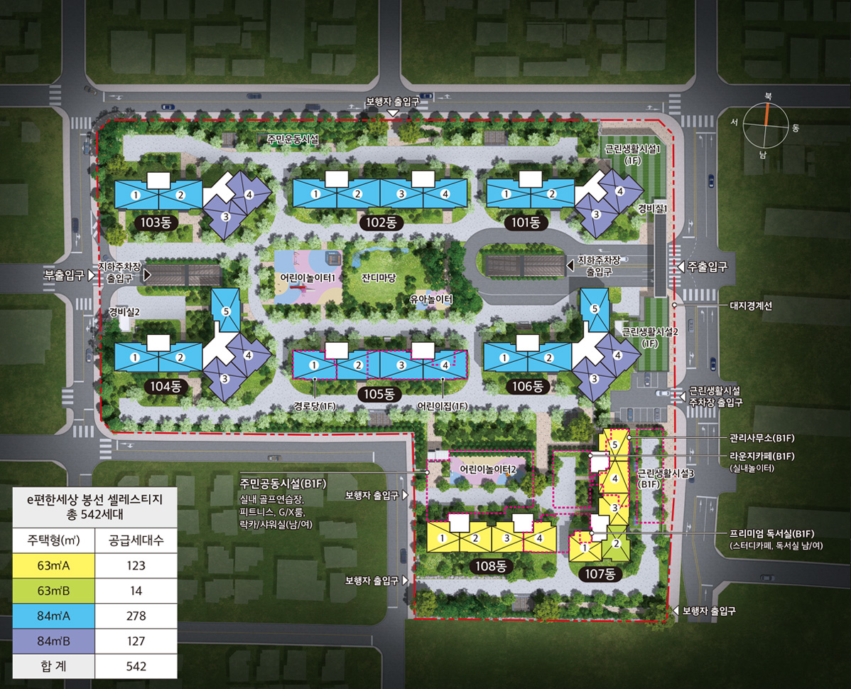 지상에 주차공간이 없는 지상층 아파트로 구성되어 보다 쾌적한 환경을 제공합니다.