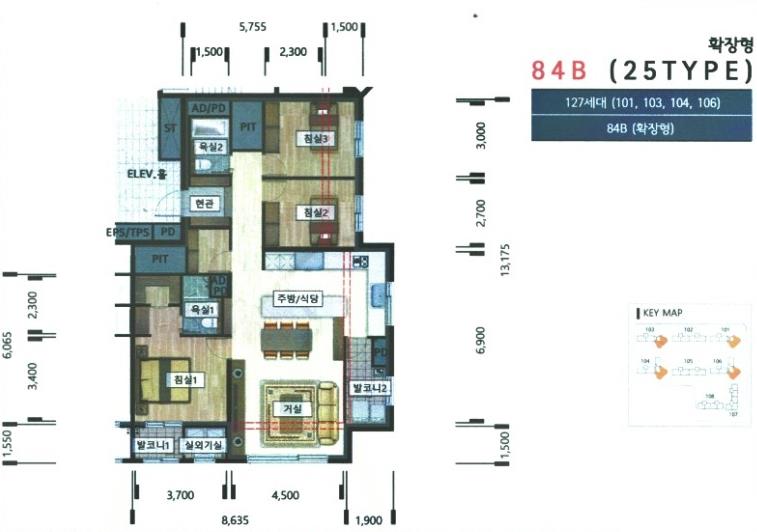 봉선동 이번 편한세상 셀레스테이지 평면도를 보시면,