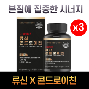 뉴트리포커스는 자신있습니다. Double Action Leucine Chondroitin의 일일 류신 값은 600mg입니다. 더블액션 류신 콘드로이틴은 안정적인 단백질 섭취가 어려운 바쁜 현대사회를 살아가는 현대인들을 위해 오랜 연구 끝에 탄생한 제품입니다.