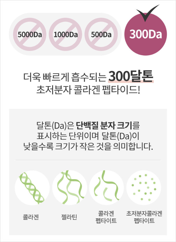저분자량 콜라겐 달톤을 중심으로 흡수력이 높은 성분을 찾아다녔습니다.