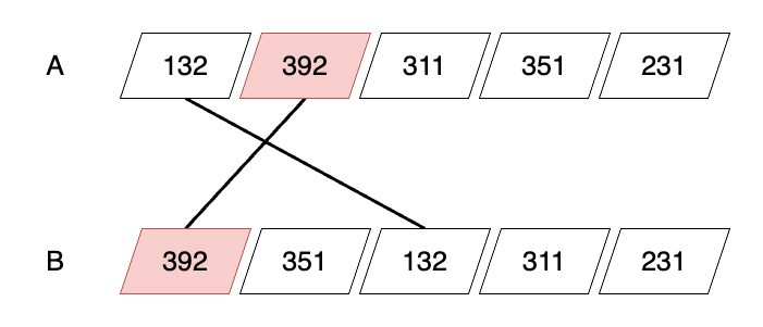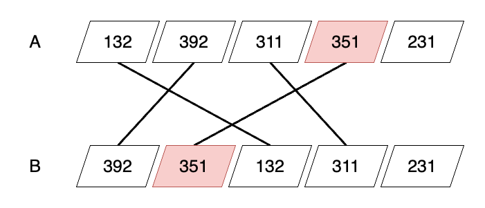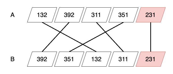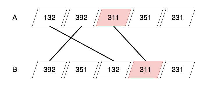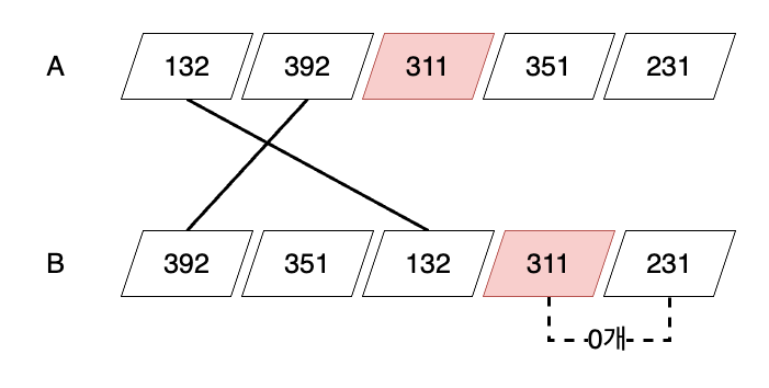 A 열의 왼쪽부터 연결하여 계산해야 합니다. A컬럼별로 B컬럼에 있는 머신 번호를 파악한 후 해당 위치에서 N-1에 연결된 머신의 번호를 저장합니다. 세그먼트 트리와 사전을 사용하여 액세스했습니다.