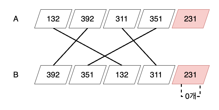 마지막으로 A열의 4번은 B열의 4번입니다.